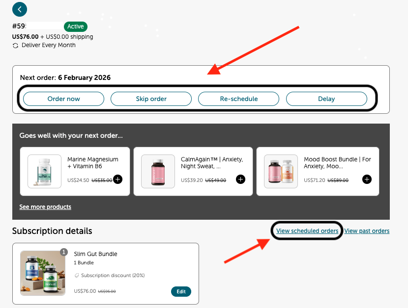 ⚠️ Important: If an order has already been charged and you intended to skip it, or if you are unsure, please contact support immediately via live chat.